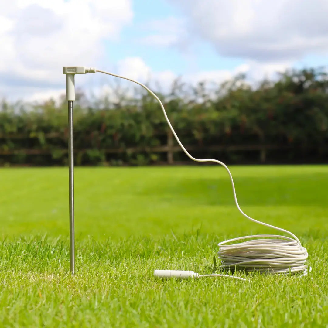 - Insérez la Tige de Mise à la Terre dans le sol à une profondeur de 20 à 25 cm pour assurer une connexion sécurisée avec la terre.